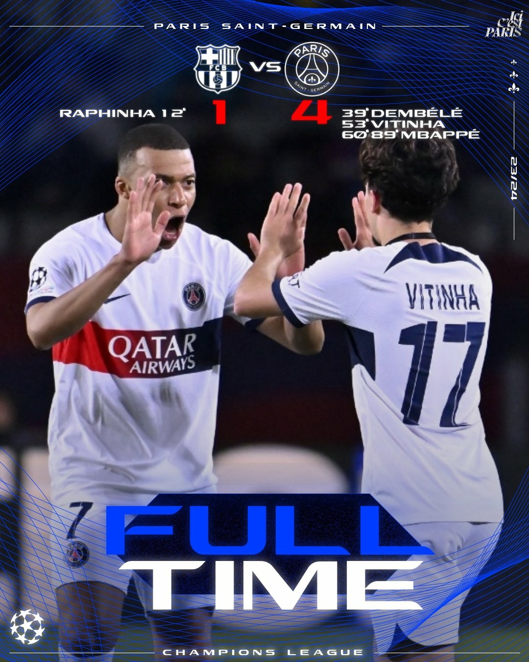Ndërsa ‘shkelmin’ e fundit Barcelonës ia dha ylli francez Kylian Mbappe, kur në minutën e 89-të shënoi golin e katërt për Parisin dhe fundosi Barcelonën.