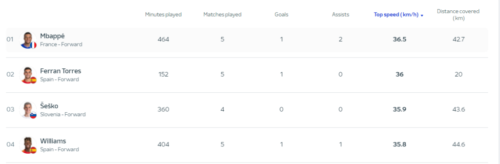 Menjëherë pas tij radhitet, Ferran Torres me 36 km/h, shkruan Klankosova.tv.
