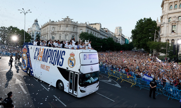 Futbollistët dhe stafi i ekipit kanë parakaluar me një autobus të hapur në rrugët e Madridit, teksa atje nuk po mungon as atmosfera nga tifozët.