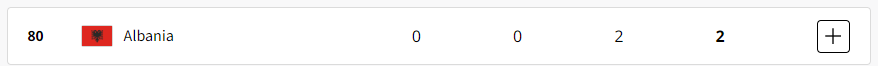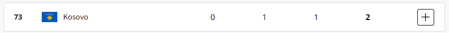Kosova është e 73-ta me një të argjendtë e një të bronztë, ndërsa Shqipëria ndan pozitën e 80-të me dy të bronzta.
