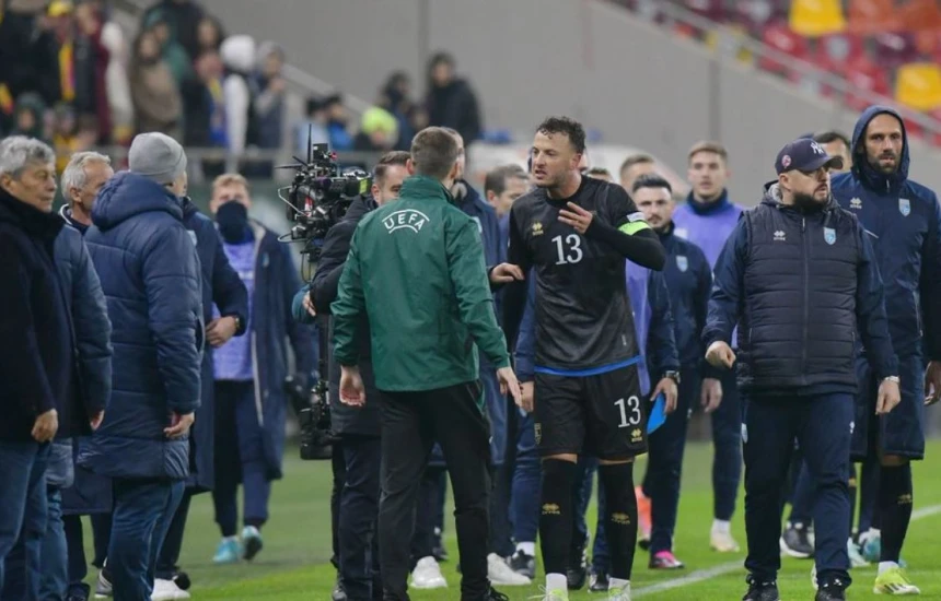 Sic raporton media e famshme rumune “fanatik”, gjyqtari kreysor i ndeshjes, është munduar t’i ndalojë lojtarët kosovarë, të largohen nga fusha.