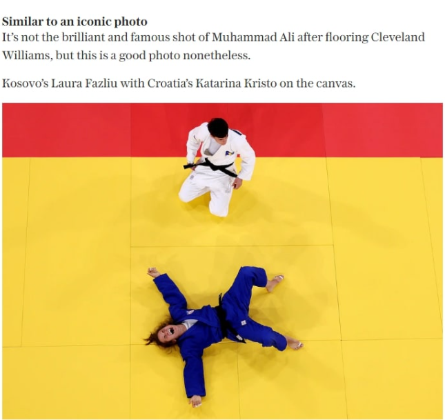 “E ngjashme me një foto ikonike. Nuk është kjo fotoja e Muhammad Ali pasi e nokautoi Cleveland Williams, por është një foto e bukur gjithashtu”, ka shkruar mediumi britanik.