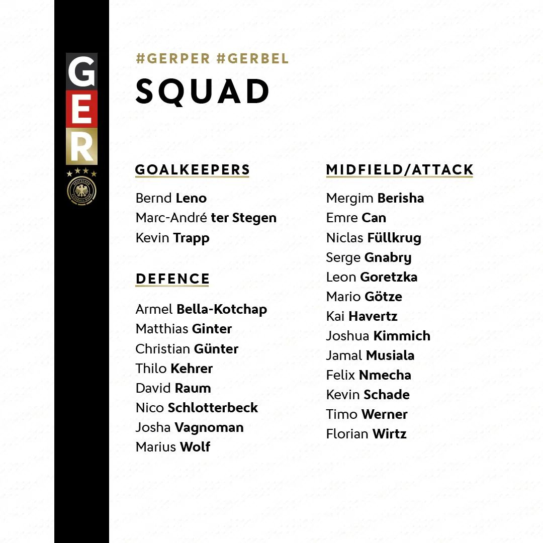 Kombëtarja e Gjermanisë ka publikuar listën me futbollistët e ftuar për ndeshjet e muajit mars.