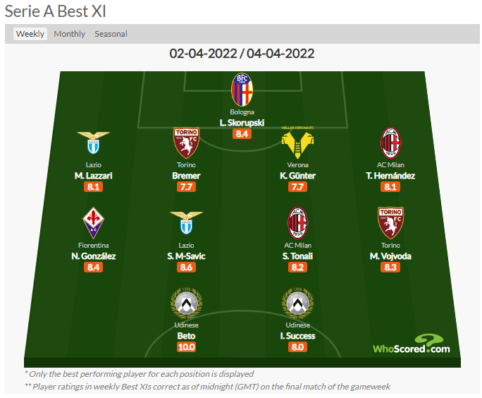 Kësisoj, futbollisti nga Skenderaj zuri vend në 11-shen më të mirë në elitën e futbollit italian. /GE/