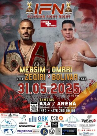 “Illyrian Fight Night” do të mbahet këtë të shtunë në AXA / ARENA të Winterthurit në Zvicër, ndërsa para meçit kryesor të Mersim Zeqirit, do të zhvillohen edhe disa meçe të tjera.
