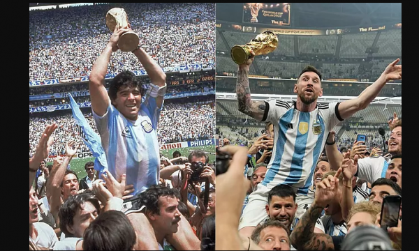 Është menduar se ky imazh nuk do të përsëritët kurrë, por kjo nuk ishte e rastit. Lionel Messi me në fund arrin që ta fitojë Botërorin, ashtu si idoli i tij dhe ka bërë një foto të tij duke u bartur në krahët e dikujt. Në rastin e Messi, ky ishte shoku i tij i ngushtë, Kun Aguero, i cili nuk hezitoi ta kapte Messi në krah dhe ta barte atë në fushë.