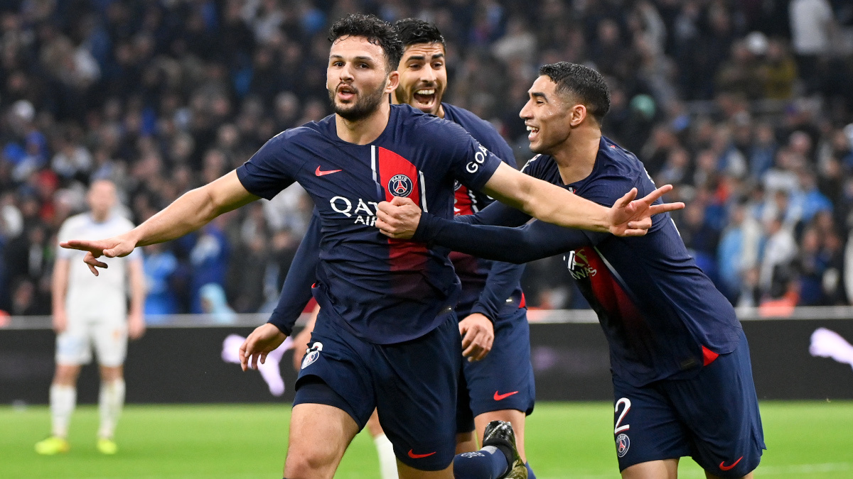 11 Marco ASENSIO (psg) - 02 Achraf HAKIMI (psg) - 09 Goncalo MATIAS RAMOS (psg) during the Ligue 1 Uber Eats match between Marseille and Paris Saint-Germain at Oragne Velodrome, Marseille on March 31, 2024 in Marseille, France.(Photo by Sylvain Thomas/FEP/Icon Sport via Getty Images) - Photo by Icon Sport