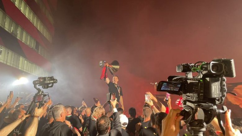 Rreth 15,000 tifozë po prisnin në selinë e Milanit kur autobusi i ekipit më në fund mbërriti dhe Zlatan Ibrahimovic doli duke mbajtur trofeun e Serisë A lart.