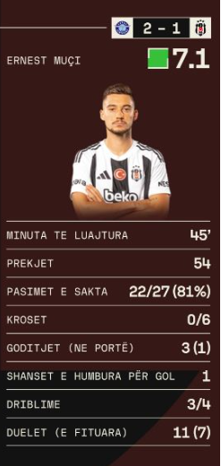 Ernest Muçi u aktivizua me fillimin e pjesës së dytë, ndërsa rezultati ishte 2-0 në favor të vendasve. Sulmuesi shqiptar asistoi në golin e vetëm të skuadrës turke, shkruan Arbresh.info.