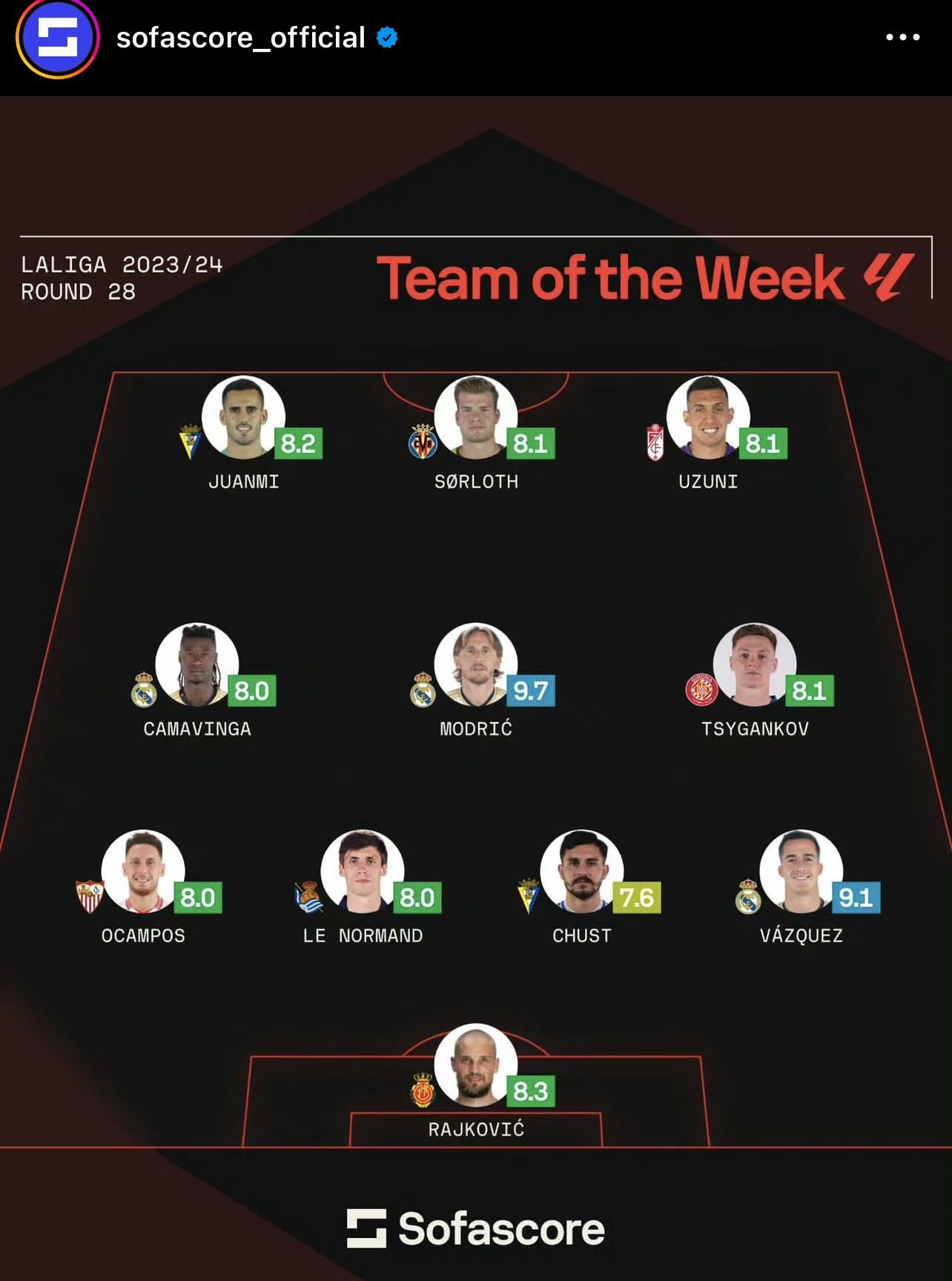 Ai është vlerësuar me notën 8.1 nga SofaScore dhe është përkrah emrave të njohur si Luka Modric, Camavinga e Lucas Vasquez./Arbresh.info/