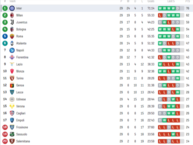 Interi pas këtij barazimi është në kuotën e 76 pikëve, kurse Napoli është i shtati 45 pikë.