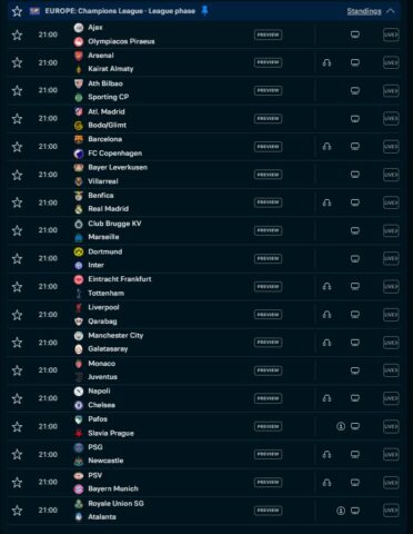 Liga e Kampionëve vazhdon edhe sonte ku do të luhen 18 ndeshje në kuadër të xhiros së fundit në garën më prestigjioze në botë.