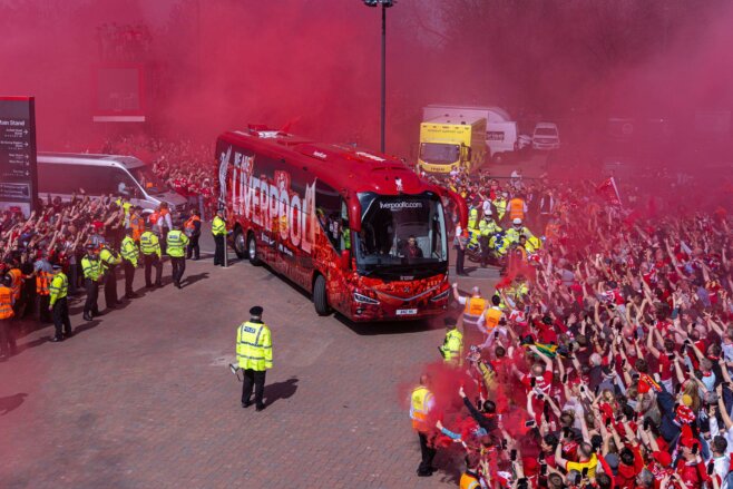 Por sot është një histori krejt tjetër dhe tifozët e Liverpoolit kanë pushtuar rrugët e qytetit duke iu bërë një pritje madhështore lojtarëve para se të hyjnë në stadium.