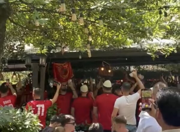 Si në çdo ndeshje tjetër kafiteritë dhe çdo gjë tjetër jehonë me këngët patriotike dhe me ngjyrat kuq e zi, ku brohorimat “Shqipëri Etnike”, nuk mungojnë.