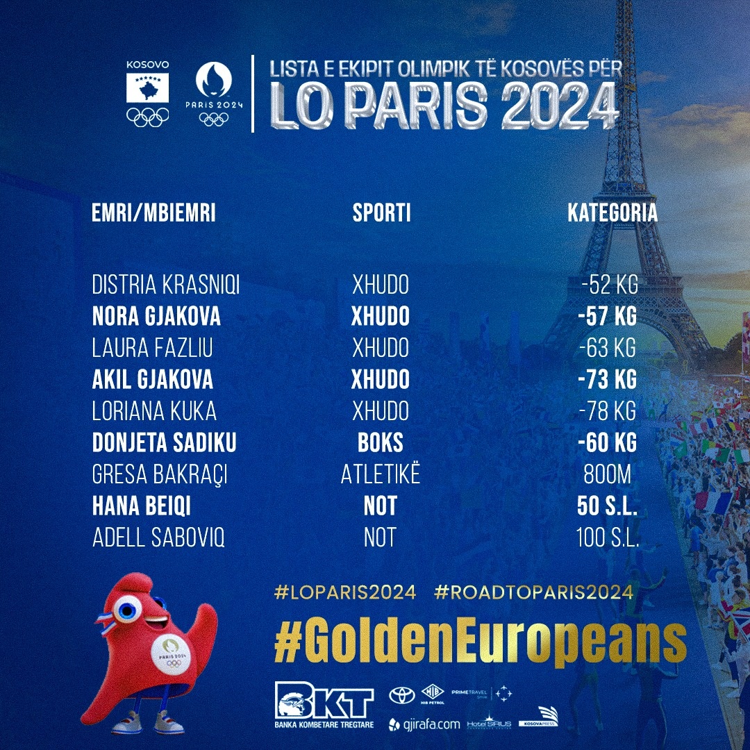 Listës i prijnë kampionet olimpike, xhudistet Distria Krasniqi e Nora Gjakova, pastaj tre xhudistët tjerë, Laura Fazliu, Akil Gjakova e Loriana Kuka.
