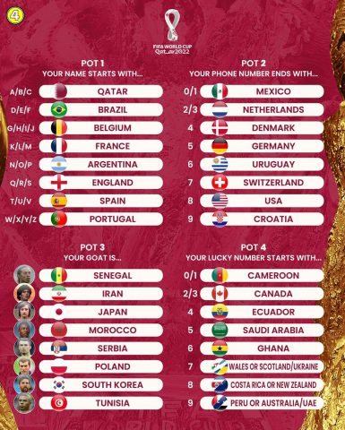 Kombet e tjera do të ndahen në katër vazo bazuar në renditjen e FIFA-s me skuadrat e vlerësuara më të mira që do t’i bashkohen Katarit në vazon e parë.