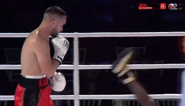 Në raundin e tretë, boksieri kundërshtar nuk mundi ta përballonte furinë e Kajoshit dhe u detyrua të dorëzohej.