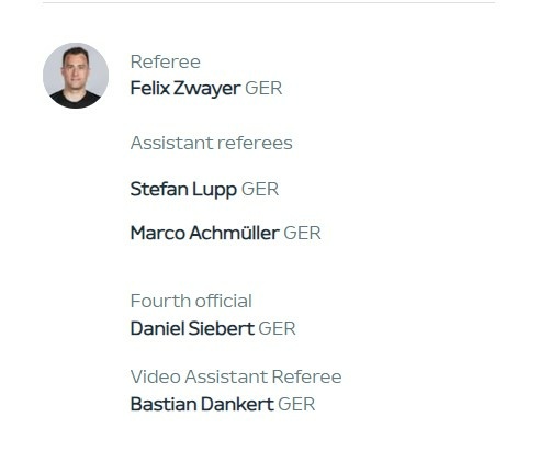 Stefan Lupp e Marco Achmueller do të jenë gjyqtarë anësor, ndërsa gjyqtar i katërt do të jetë Daniel Siebert.