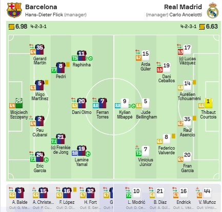Erik Garcia dhe Lamine Yamal shënuan nga një gol, e ku Raphinha shënoi dy herë për katalanasit, ndërsa Kylian Mbappe shënoi het-trik në këtë ndeshje.