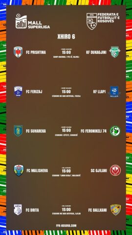 Xhiroja e gjashtë në Superligën e Kosovës në futboll fillon nesër, teksa tani më janë publikuar orari zyrtar i takimeve.