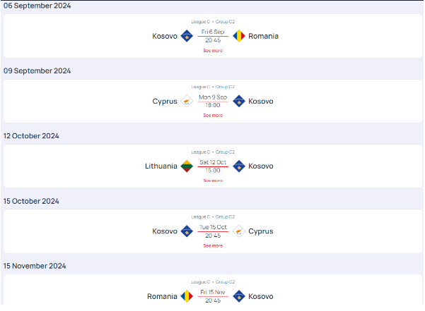 E ndeshja e fundit në Grupin 2 të Ligës C zhvillohet më 18 nëntor me fillim nga ora 20:45 ndaj Lituanisë në Prishtinë. /Telegrafi/