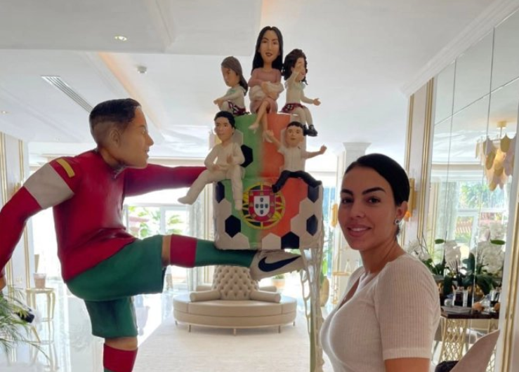 E gjithë familja e CR7 në një tortë 1.5 metra të lartë, Georgina pozon pranë saj