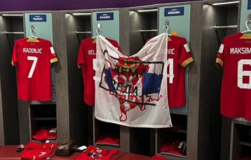 • Në zhveshtoren e ekipit serb gjendet harta e Kosovës me ngjyrat e flamurit të S...