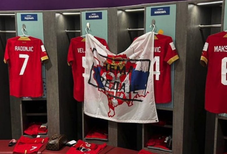 Në zhveshtoren e ekipit serb gjendet harta e Kosovës me ngjyrat e flamurit të Serbisë