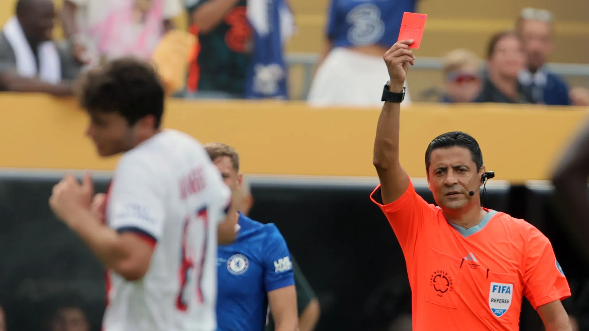 Neves u ndëshkua me karton të kuq direkt, për sjellje të dhunshme, pasi pamjet në VAR, treguan se ai kishte tërhequr flokët e mbrojtësit të Chelseat, Marc Cucurella, gjatë një përplasjeje jashtë aksionit të lojës.