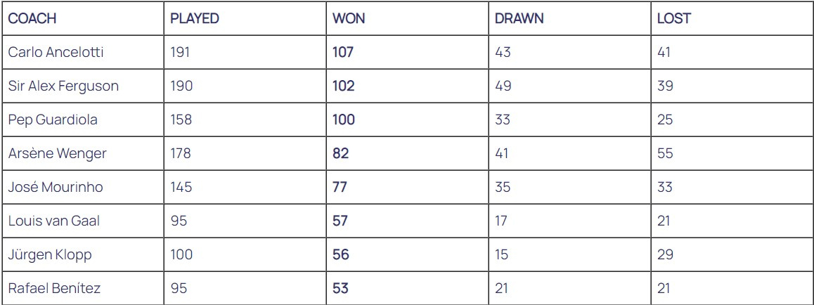 Katalunasit i janë dashur vetëm 160 ndeshje si trajner për të arritur 100 fitore, më shpejt se rekordmeni i mëparshëm Carlo Ancelotti, të cilit iu deshën 180 ndeshje për të arritur tre shifror.
