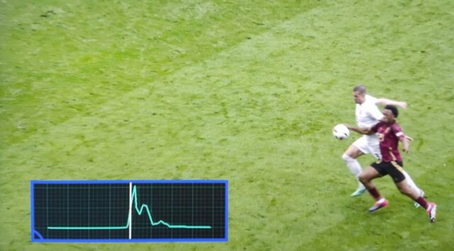Topi zyrtar i Euro 2024 i krijuar nga Adidas, ka një çip në qendër të saj që dhuron një pamje të gjerë të lëvizjes së topit dhe sistemi ishte në gjendje që të zbulonte se dora e Opendas me të vërtetë kishte bërë kontakt me topin.