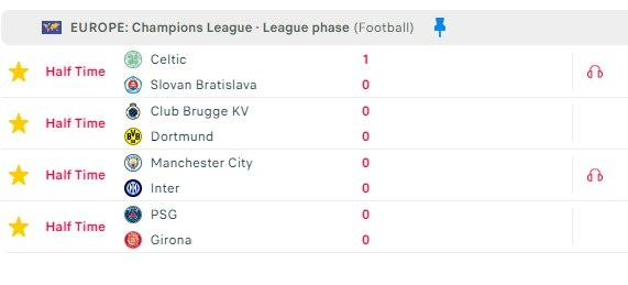 E vetmja skuadër që ka arritur të realizoj është Celtici ndaj Slovan Bratislavas, ku rezultati është 1-0 pas pjesës së parë.