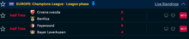 Dy ndeshje janë duke u luajtur në program nga ora 18:45 në garën më prestigjioze të klubeve Champions League.