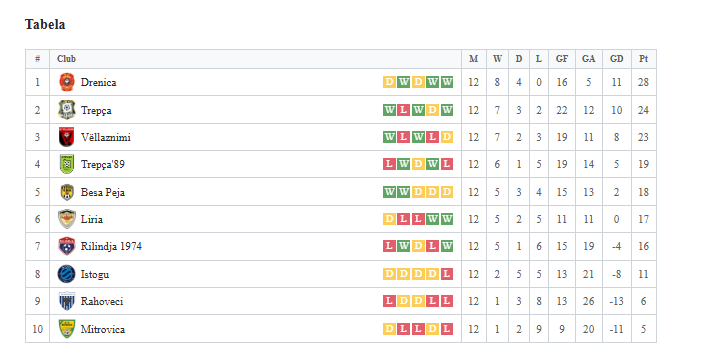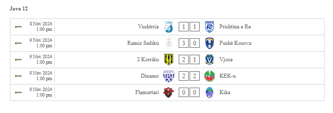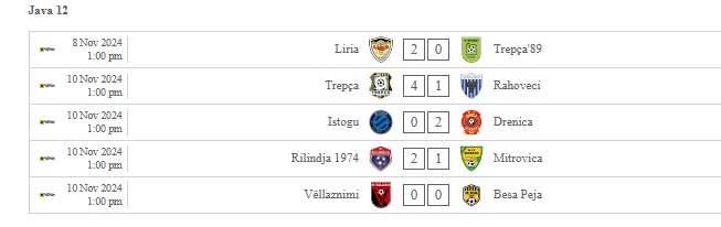 Gjatë kësaj fundjave ka përfunduar java e 12-të në Ligën e Parë të Kosovës.