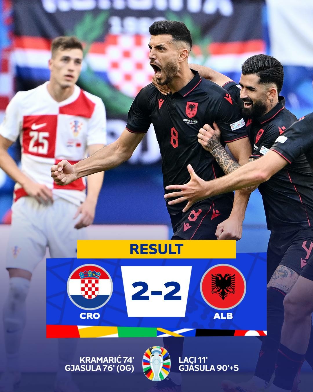Krejt në fund Shqipëria përmes lojtarit Klaus Gjasula, ku me golin e tij Shqipëria mori pikën e parë këtë Euro.