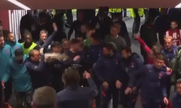 Por, përleshja mes dy ekipeve nuk u mbyll me vërshëllimën e fundit. Futbollistët e dy ekipeve u përleshën edhe në tunelin e stadiumit./Express/