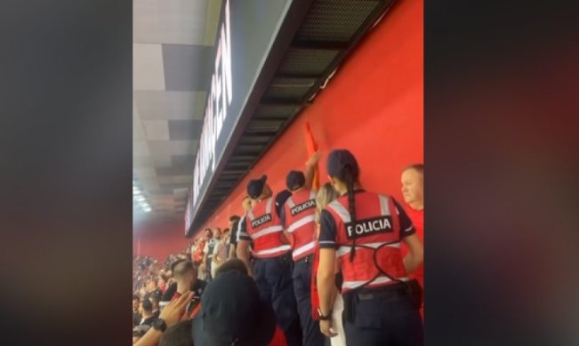Gjatë zhvillimit të ndeshjes mes Shqipërisë dhe Serbisë në stadiumin “Air Albania”, forcat e sigurisë kanë ndërhyrë për të larguar një flamur të Ushtrisë Çlirimtare të Kosovës (UÇK), i cili ishte shfaqur në tribunat e stadiumit.