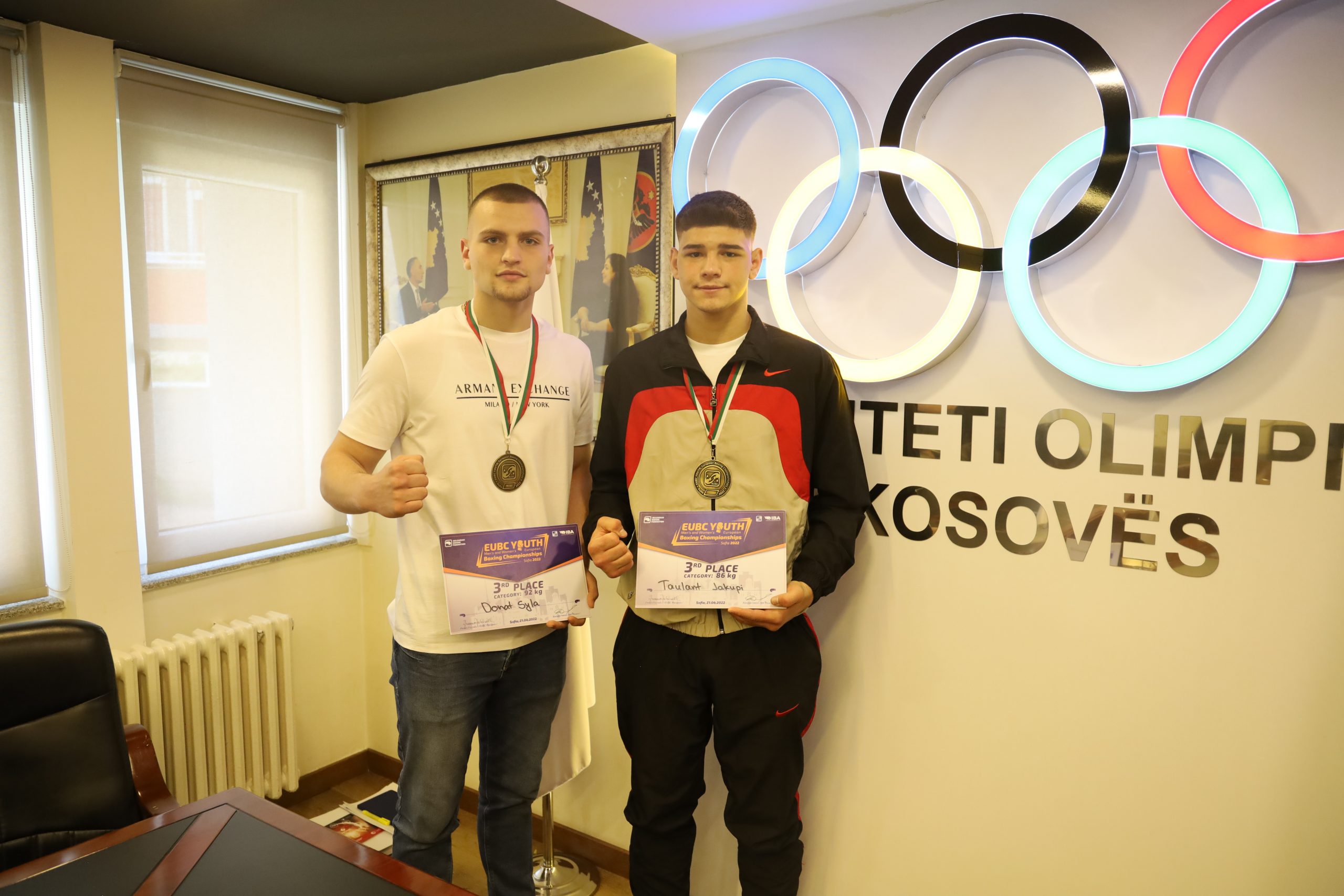 Presidenti i Komitetit Olimpik të Kosovës ka pritur sot delegacionin e boksit pas suksesit të arritur në Kampionatin Evropian të të Rinjve (U-18), të mbajtur në Sofia të Bullgarisë, me ç’rast boksierët Taulant Jakupi dhe Donat Syla, fituan medaljet e bronzta.