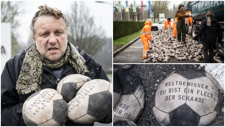 Grupet e të drejtave të njeriut, në bashkëpunim me artistin gjerman Volker-Johannes Trieb, kanë ekspozuar 6500 thasë me rërë që duken si top futbolli përpara selisë së FIFA-s në Cyrih.