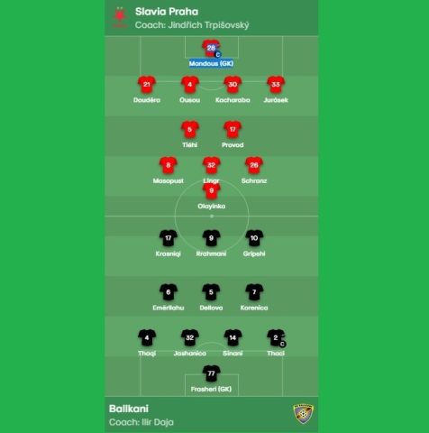 Tashmë janë publikuar formacionet zyrtare të ndeshjes Sllavia Praga- Ballkani, ndërshej kjo e vlefshme për fazën e grupeve në Conference League.