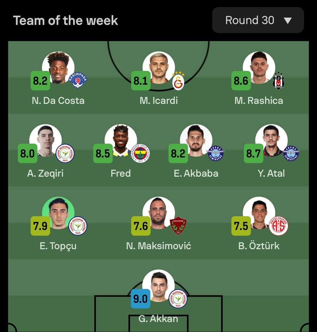 Teksa ky është formacioni i plotë të javës së 30-të në Superligën e Turqisë.