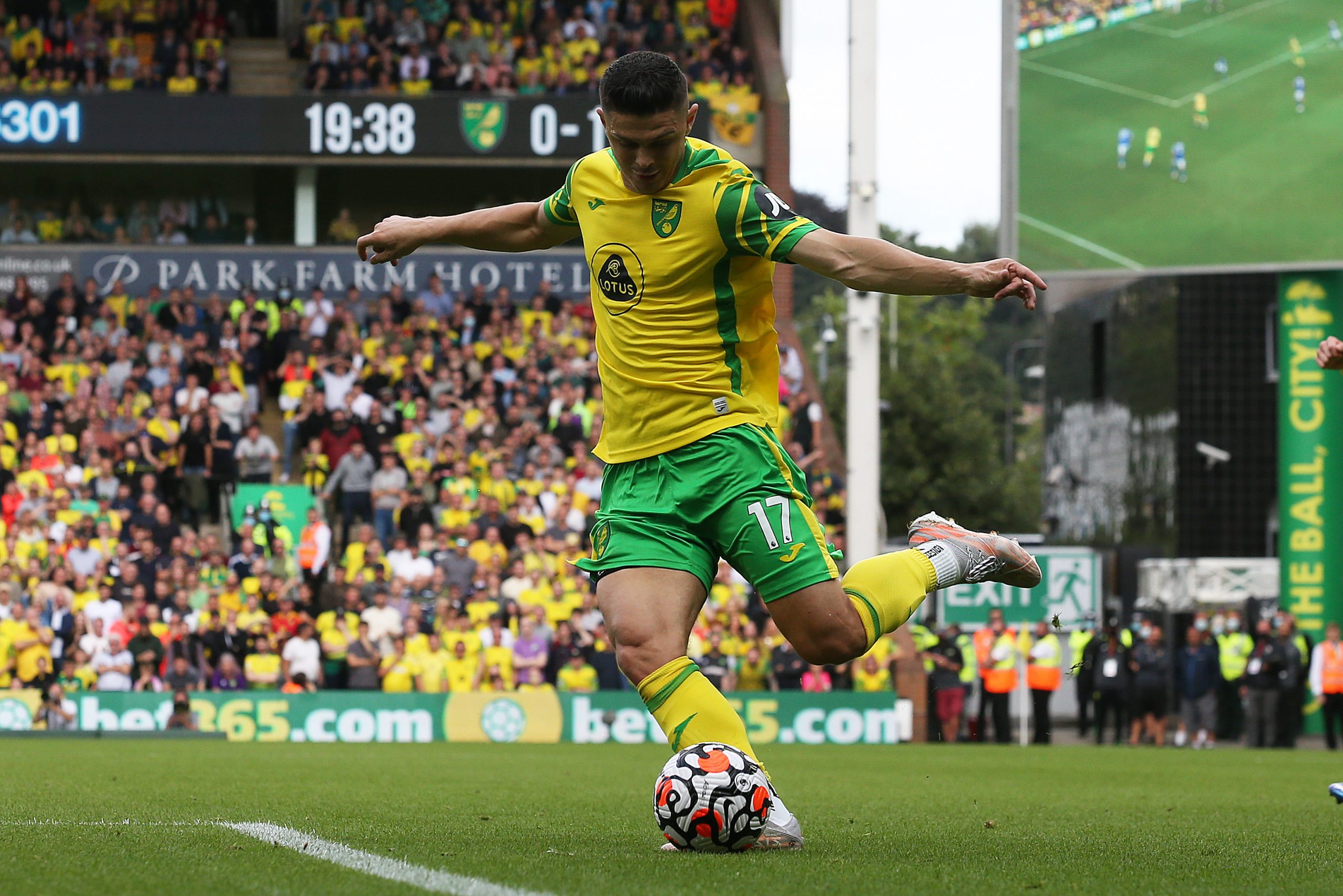 Milot Rashica of Norwich crosses the ball during the Premier League match at Carrow Road, Norwich Picture by Paul Chesterton/Focus Images Ltd +44 7904 640267 28/08/2021