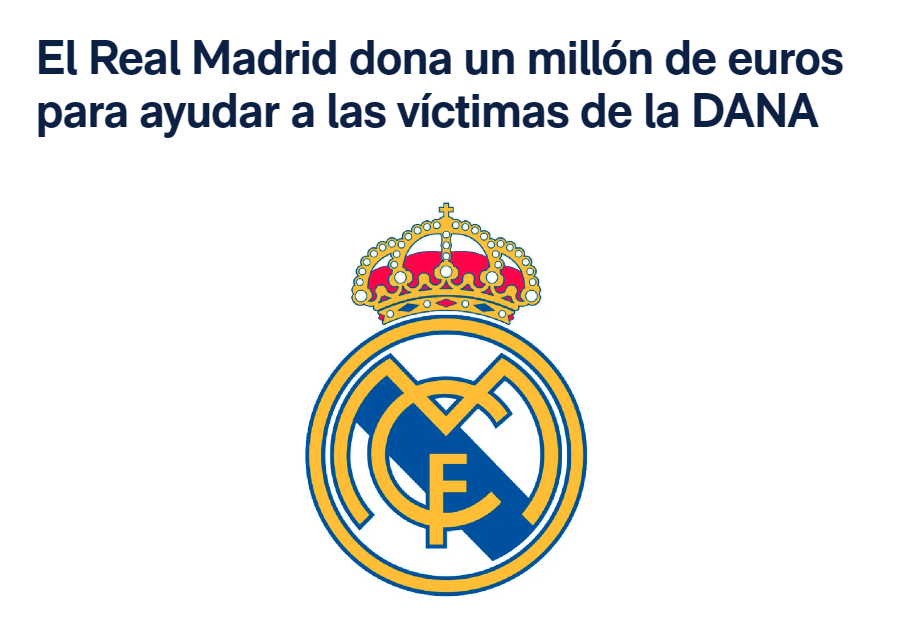 Teksa qyteti spanjoll Valencia, është i përmbytur nga uji, kjo ka bërë që edhe ndeshja e fundjavës në La Liga, ajo mes Valencias dhe Real Madridit të shtyhet për një datë tjetër. E klubi i Real Madridit, ka bërë të ditur se ka ndarë një milion euro për të ndihmuar të prekurit nga përmbytjet në Valencia.