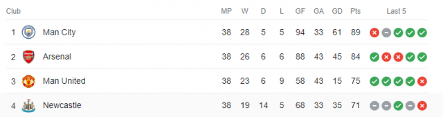 Manchester City tashmë tash e disa xhiro kanë konfirmuar titullin, kurse Arsenali, Manchetser United do t’i bashkohen atyre në Champions League.