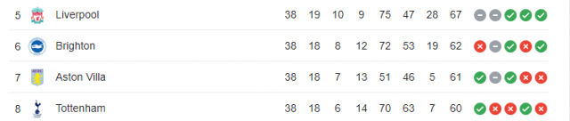 Kurse, Aston Villa ka zënë vendin e Tottenham në pozitën e shtatë, duke bërë që “Spurs” të mbeten pa ndeshje evropiane sezonin e ardhshëm.