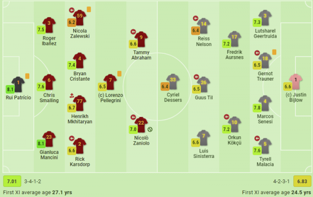 Gianluca Mancini u vlerësua më së larti në këtë ndeshje. Ai mori notën 8.1.