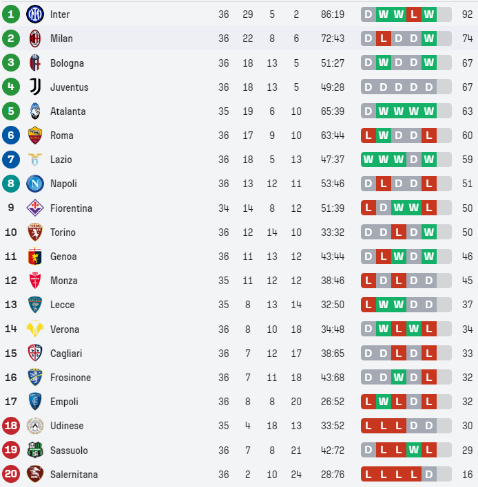 Roma është aktualisht e gjashta me 60 pikë, tri pikë më pak se Atalanta në të pestin, ndërsa në xhiron e 37-të takohet me Genona.