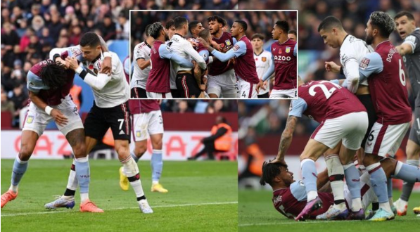 Lojtarët e Manchester United dhe Aston Villas duhej të ndërhynin pasi Cristiano Ronaldo dhe Tyrone Mings u përplasën gjatë humbjes 3-1 të Djajve të Kuq në Midlands të dielën.
