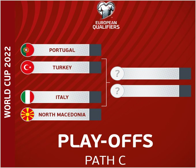 Për të qenë pjesë e turneut të madh botëror në fund të këtij viti, Portugalia duhet fillimisht ta eliminojë Turqinë dhe pastaj fituesin e duelit ndërmjet Italisë dhe Maqedonisë së Veriut.