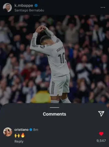 Ndërkohë pas një postimi të tij në rrjetin social Instagram, Kylian Mbappe ka përmendur Ronaldon.